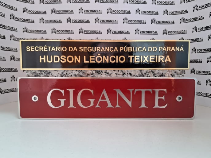 Latão: com um acabamento dourado atraente, é escolhido para placas comemorativas e de homenagem.