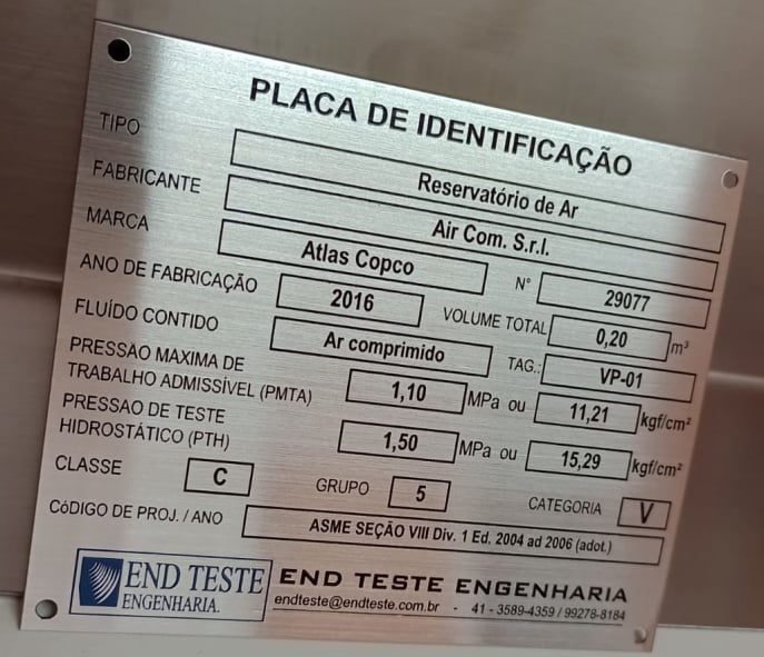 Indústria: Placas de identificação para máquinas, equipamentos e ferramentas.